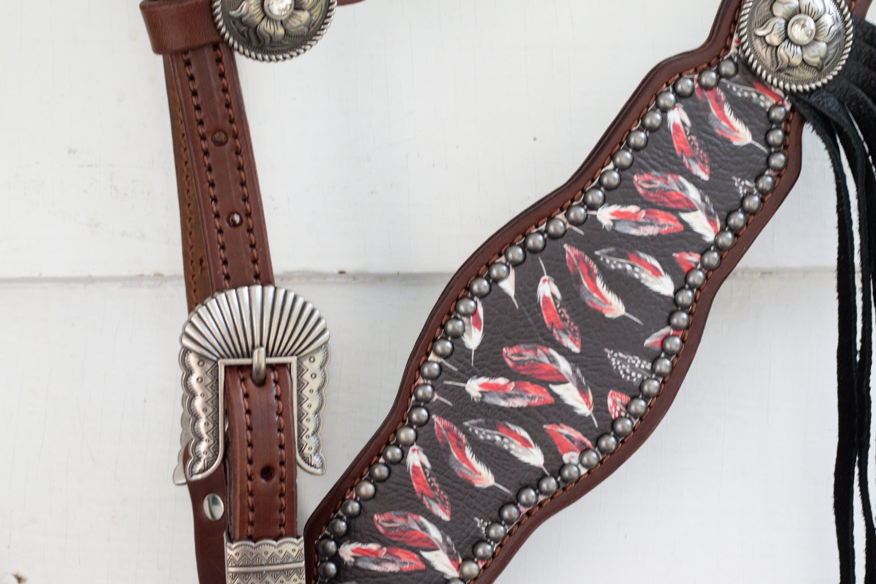 [In Stock] Black and Red Feather- Tack Set- hickory w/ removable tassels